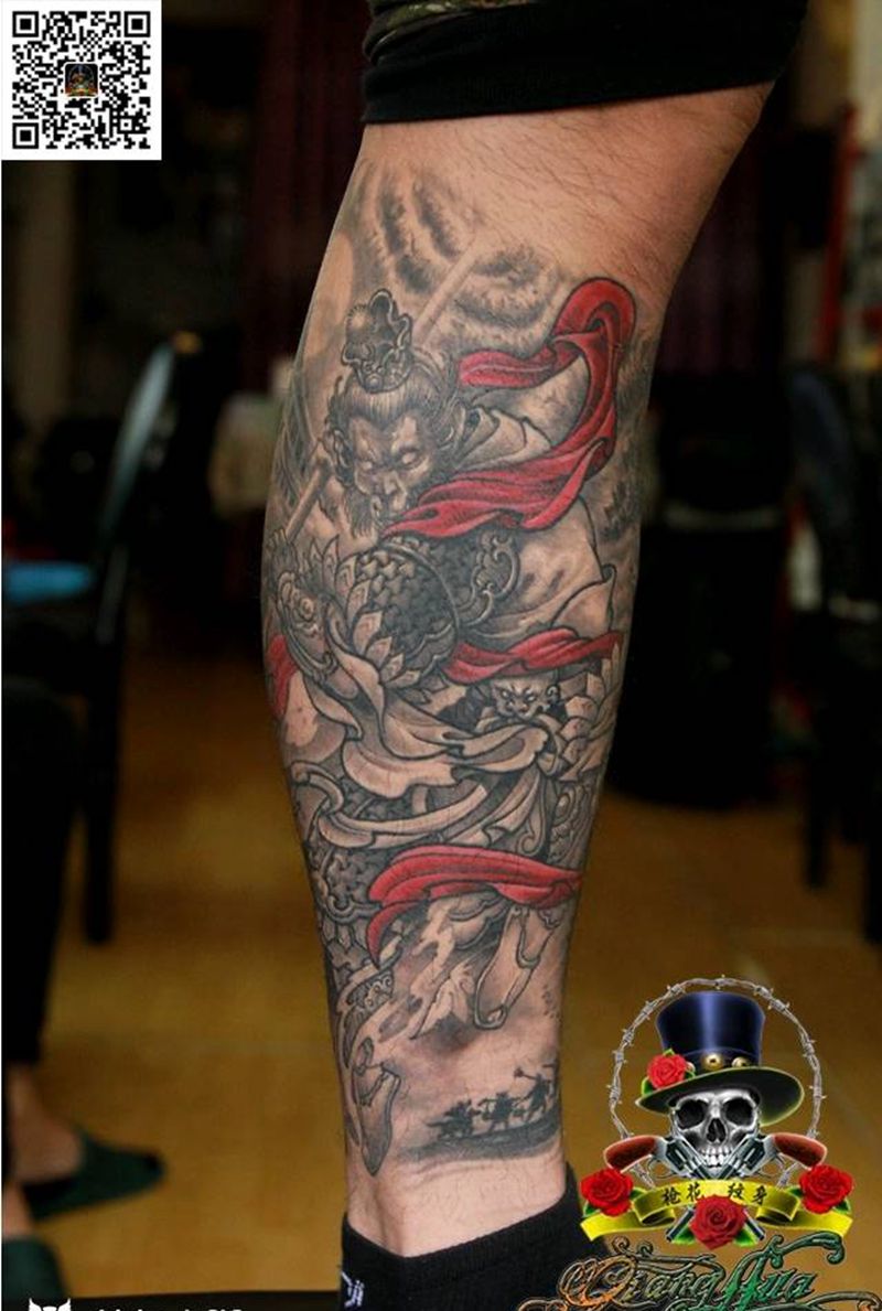 齐天大圣纹身图片_腿部传统肖像国画动物人物鬼神宗教成品纹身图案