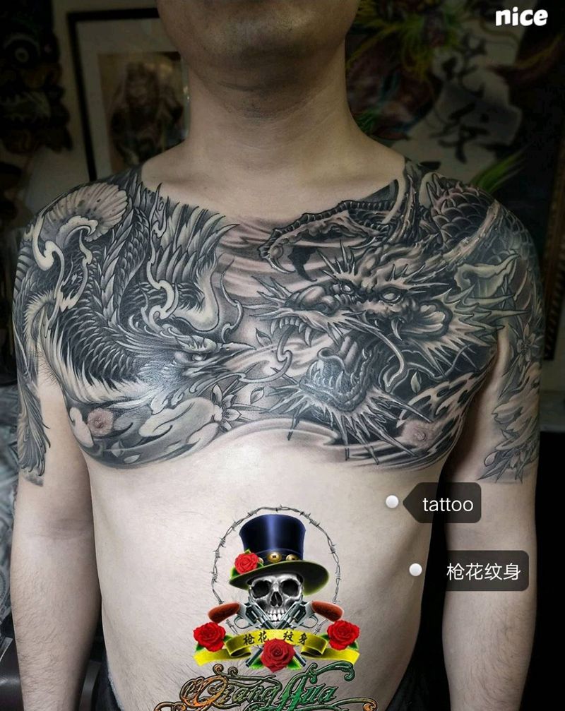 龙凤呈祥纹身图片_胸部新传统纹身图案