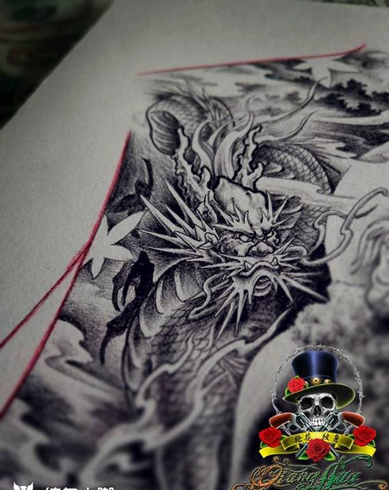 • T网红王老大花腿龙纹身图片_腿部新传统纹身图案