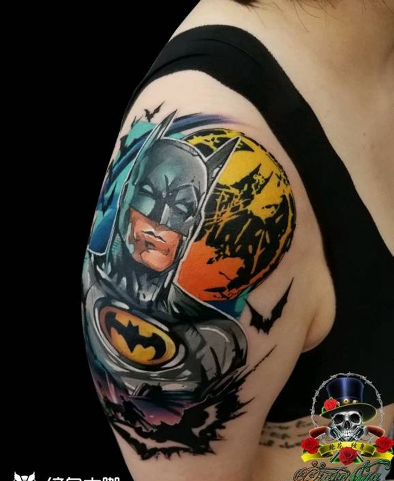 蝙蝠侠纹身图片_手臂水彩欧美写实纹身图案