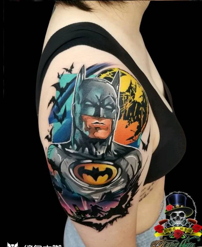 蝙蝠侠纹身图片_手臂水彩欧美写实纹身图案