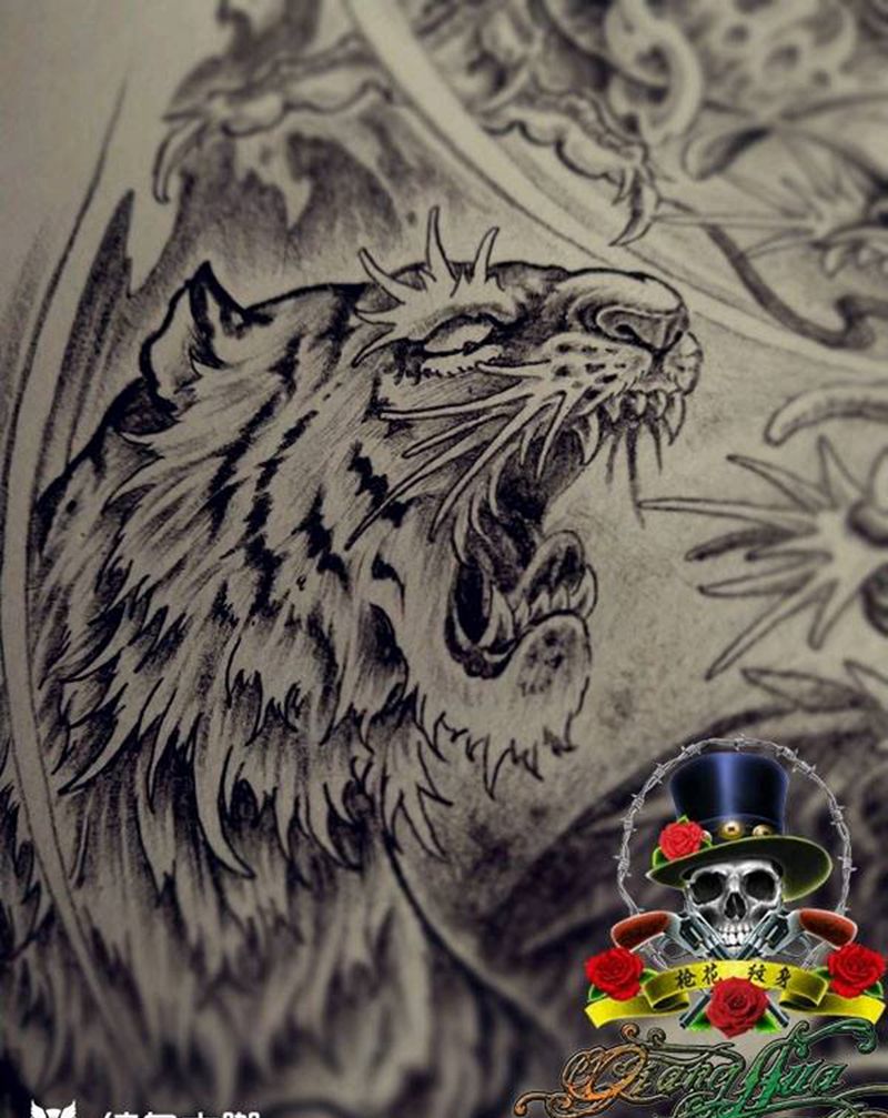 • H老虎纹身手稿图案大全