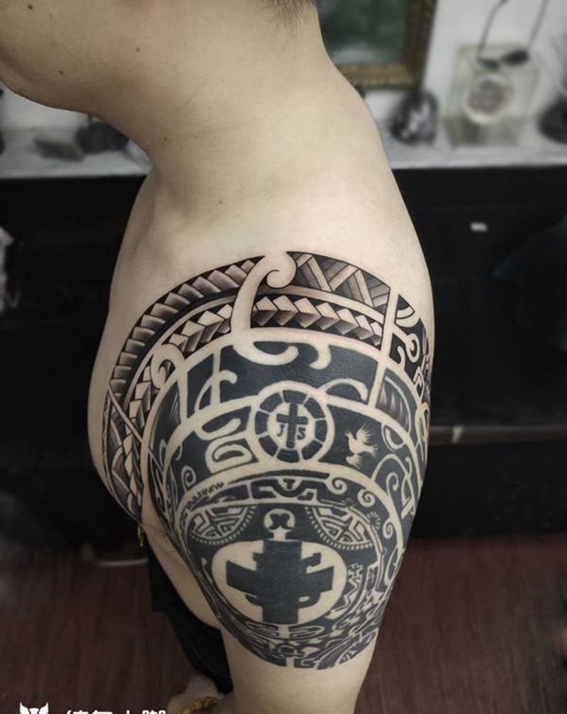 • 纹身吧推荐的披肩图腾半胛纹身图案作品展示