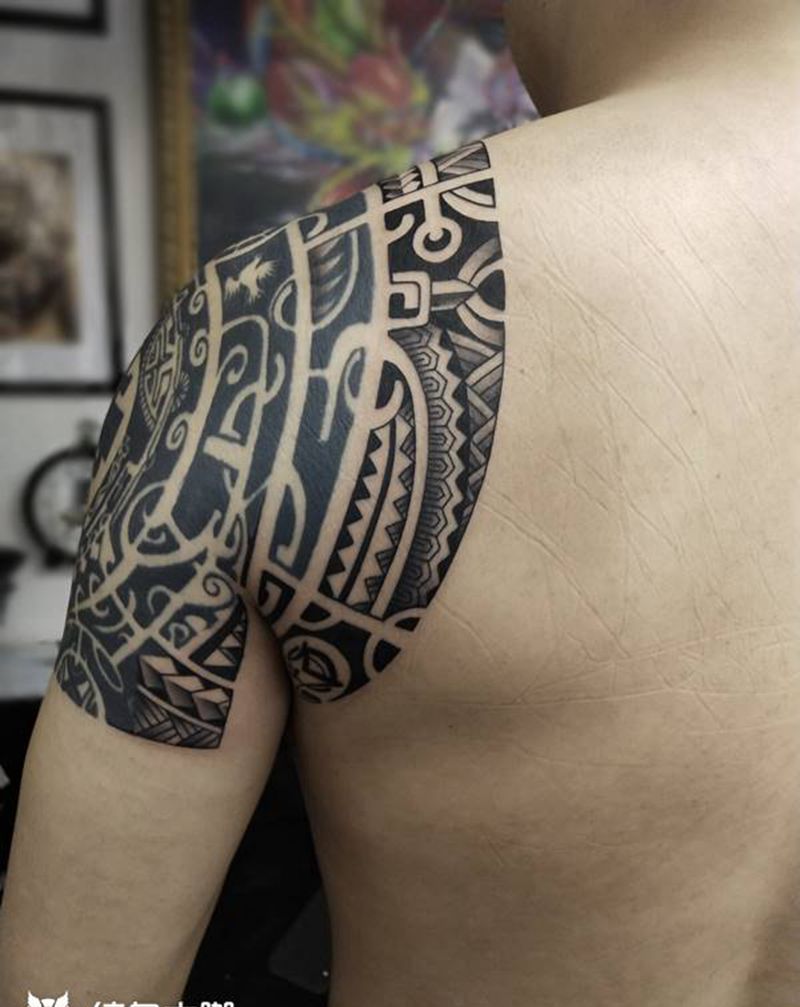 • 纹身吧推荐的披肩图腾半胛纹身图案作品展示