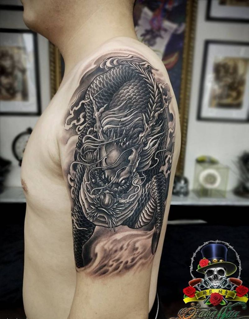 • 纹身吧推荐的披肩图腾半胛纹身图案作品展示