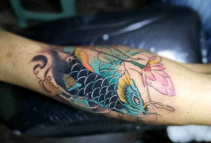 • T网红王老大花腿龙纹身图片_腿部新传统纹身图案