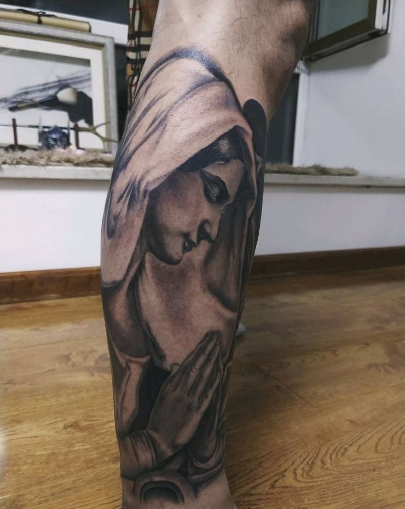 • T网红王老大花腿龙纹身图片_腿部新传统纹身图案