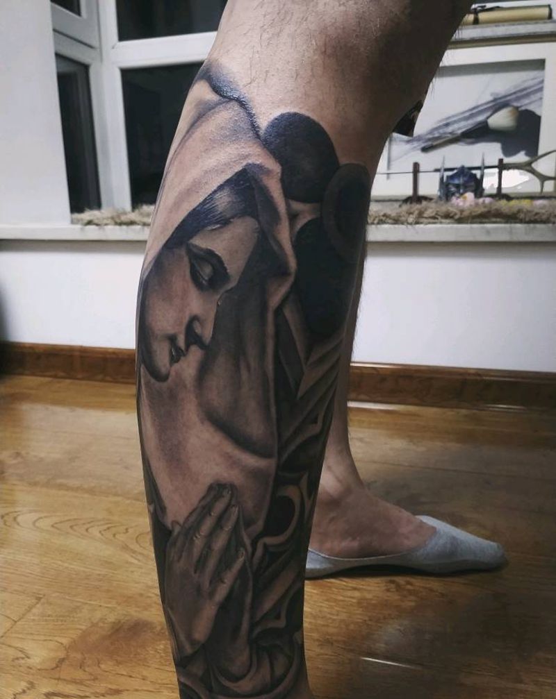 • T网红王老大花腿龙纹身图片_腿部新传统纹身图案