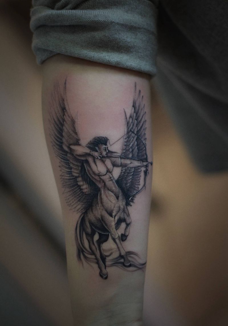当前位置: 首页 >辽宁省锦州市纹身店-纹人刺青纹身图案>天马兽纹身图片_手臂点刺纹身图案
