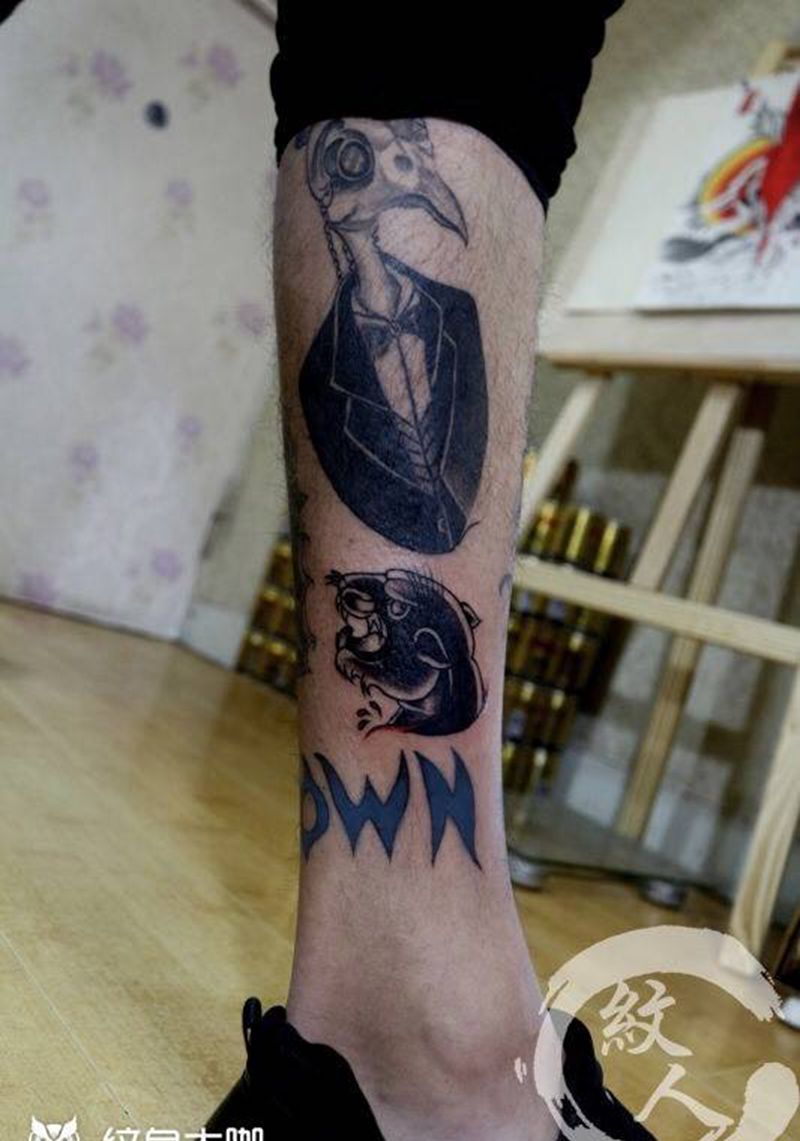 • T包小腿吹火男+阿多福纹身图片_腿部老传统新传统吹火男阿