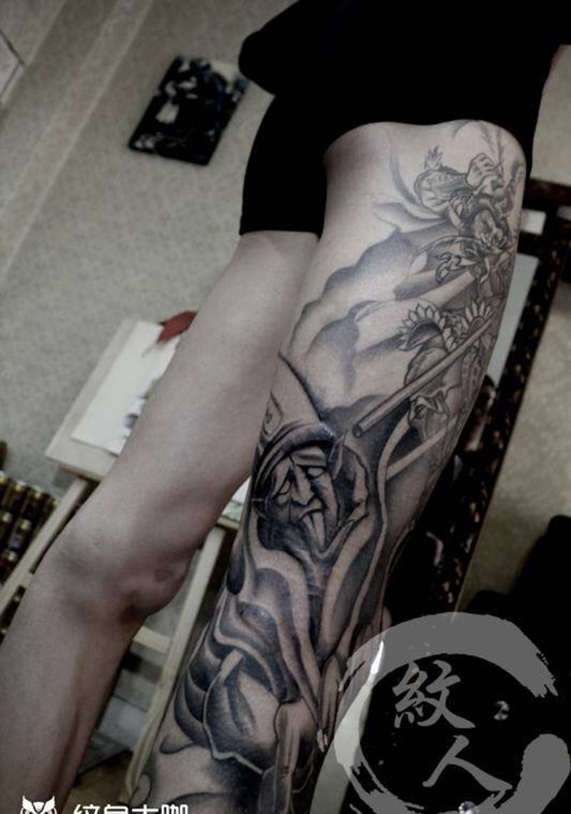 • T网红王老大花腿龙纹身图片_腿部新传统纹身图案