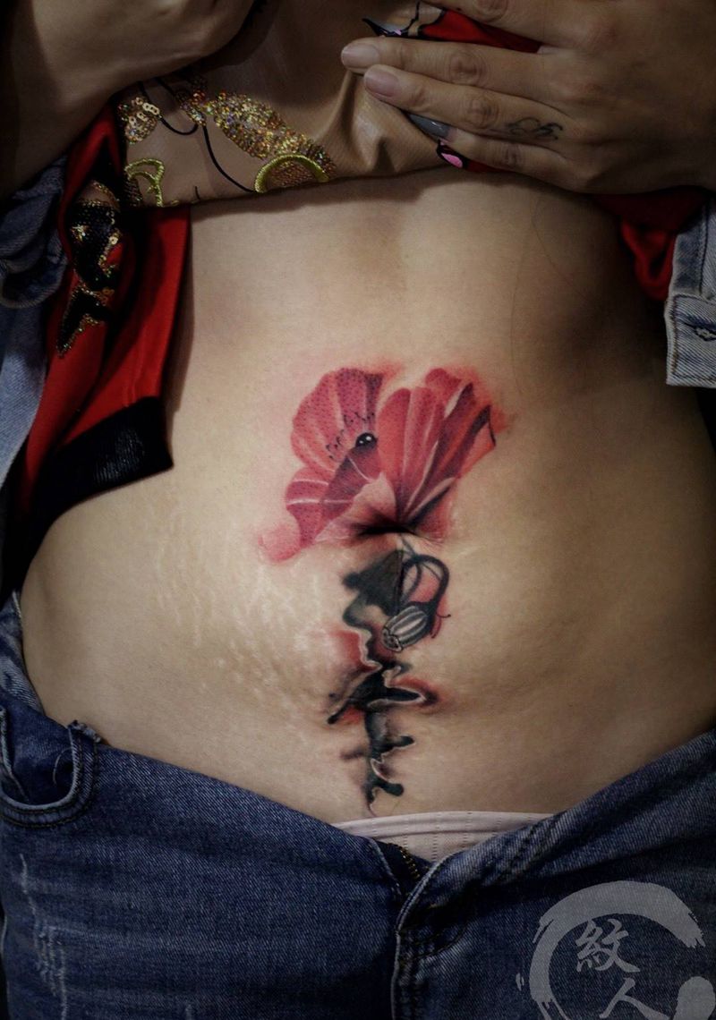• 时尚性感的腹部莲花纹身图案