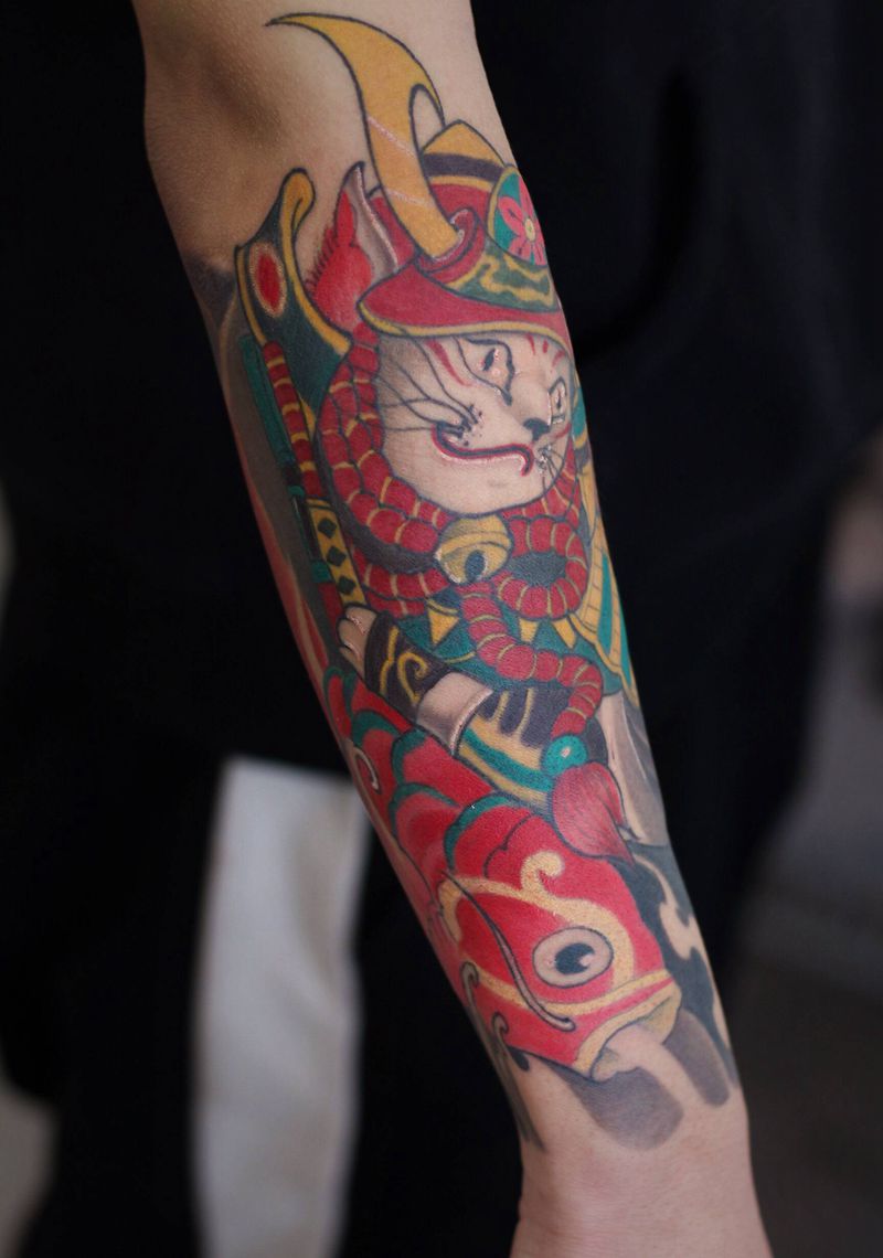 当前位置: 首页 >辽宁省锦州市纹身店-纹人刺青纹身图案>武士猫纹身图片_手臂新传统纹身图案