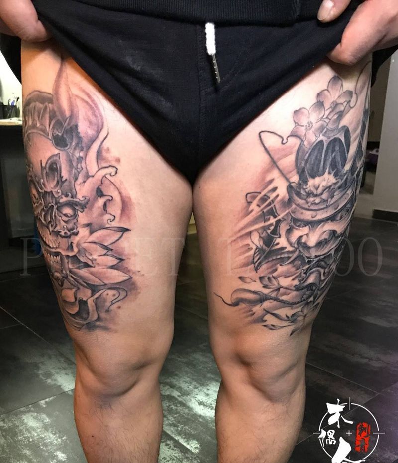 • T网红王老大花腿龙纹身图片_腿部新传统纹身图案