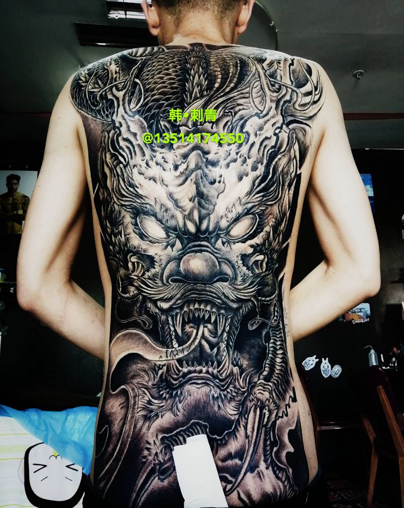 黑灰满背纹身图案