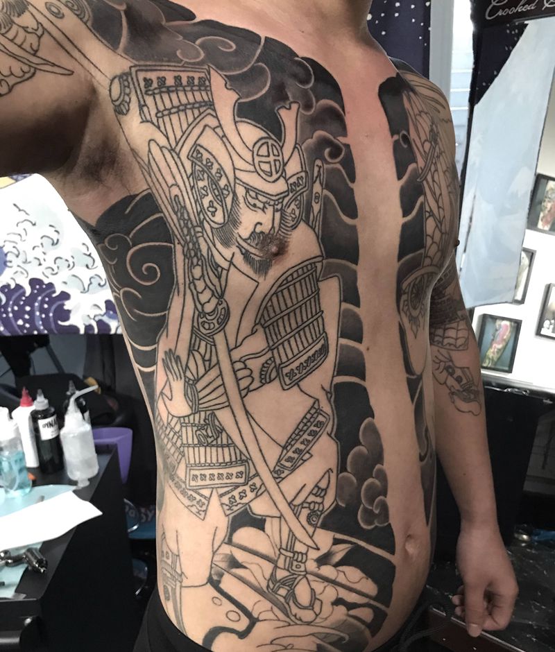 • 黑灰满背纹身图案