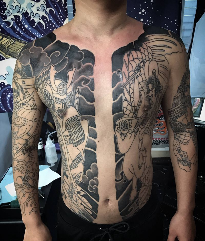 • 黑灰满背纹身图案