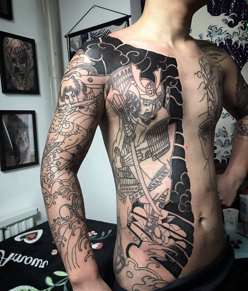 • 黑灰满背纹身图案