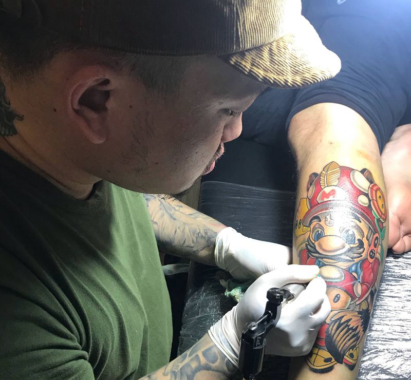 当前位置: 首页 >辽宁省本溪市纹身店-吴建刺青纹身图案>我的最新工作 《马里奥》纹身图片_New School纹身图案