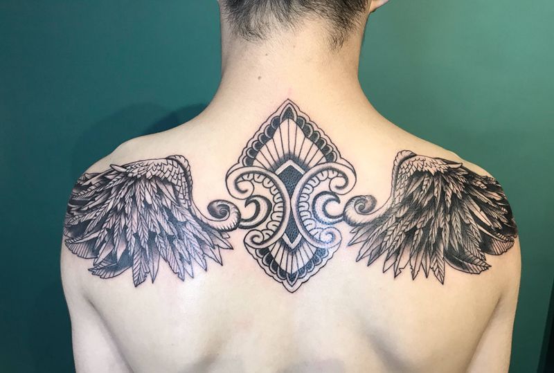 • 纹身吧推荐的披肩图腾半胛纹身图案作品展示