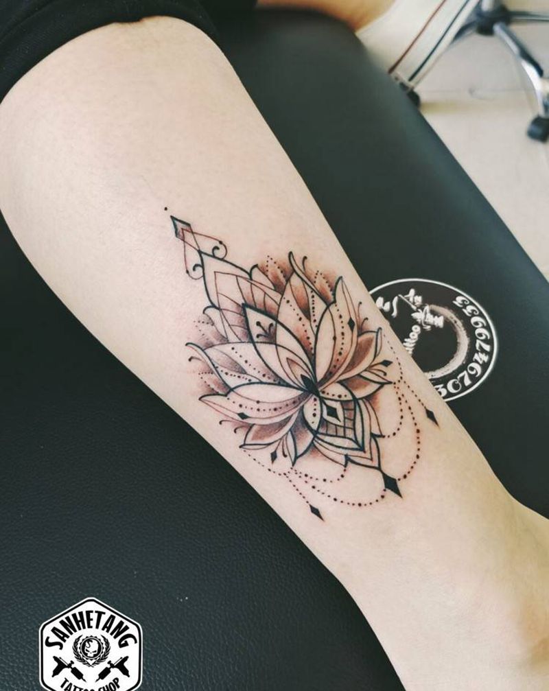 梵花纹身图片_腿部脚部几何点刺梵花脚踝小腿纹身图案