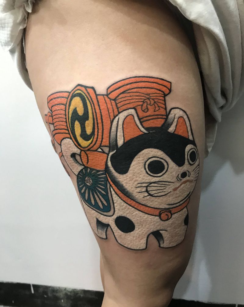 • T网红王老大花腿龙纹身图片_腿部新传统纹身图案