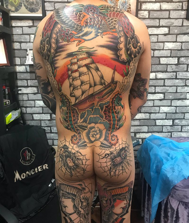 完成度80%纹身图片_背部臀部Old School纹身图案