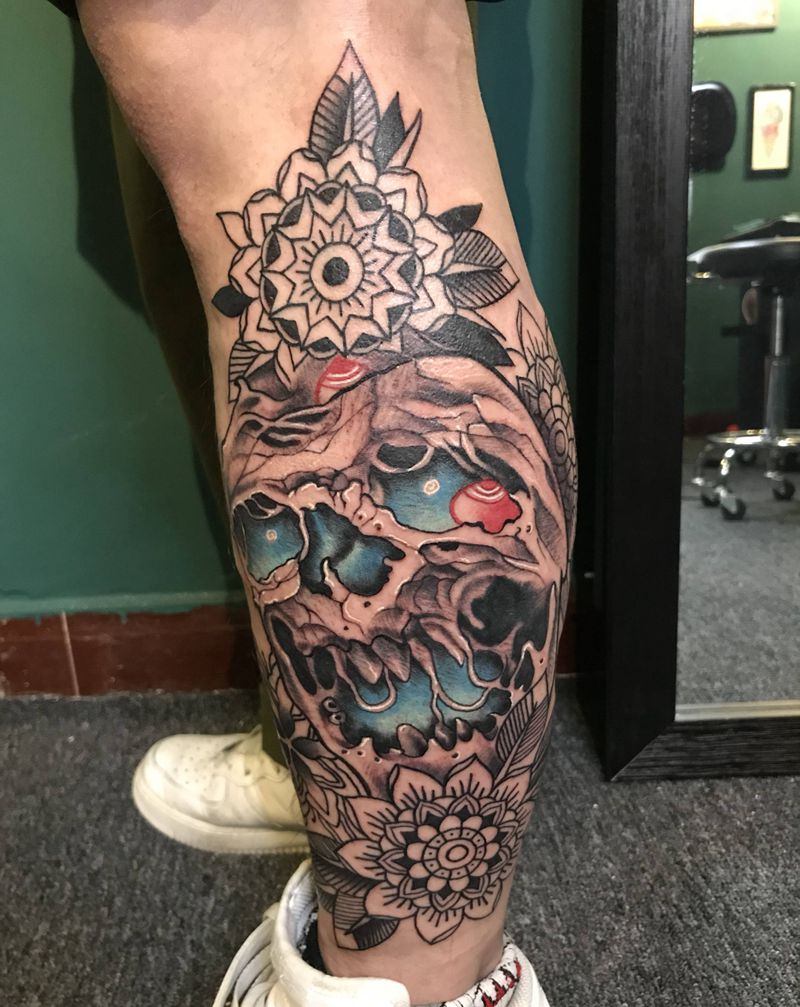 • T网红王老大花腿龙纹身图片_腿部新传统纹身图案