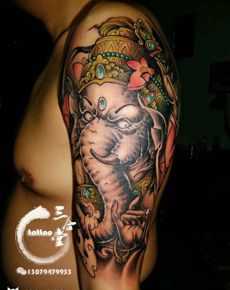 当前位置: 首页 >辽宁省营口市纹身店-三合堂纹身纹身图案>象神纹身图片_肩部手臂传统宗教营口鲅鱼圈纹熊岳盖州成品纹身图案