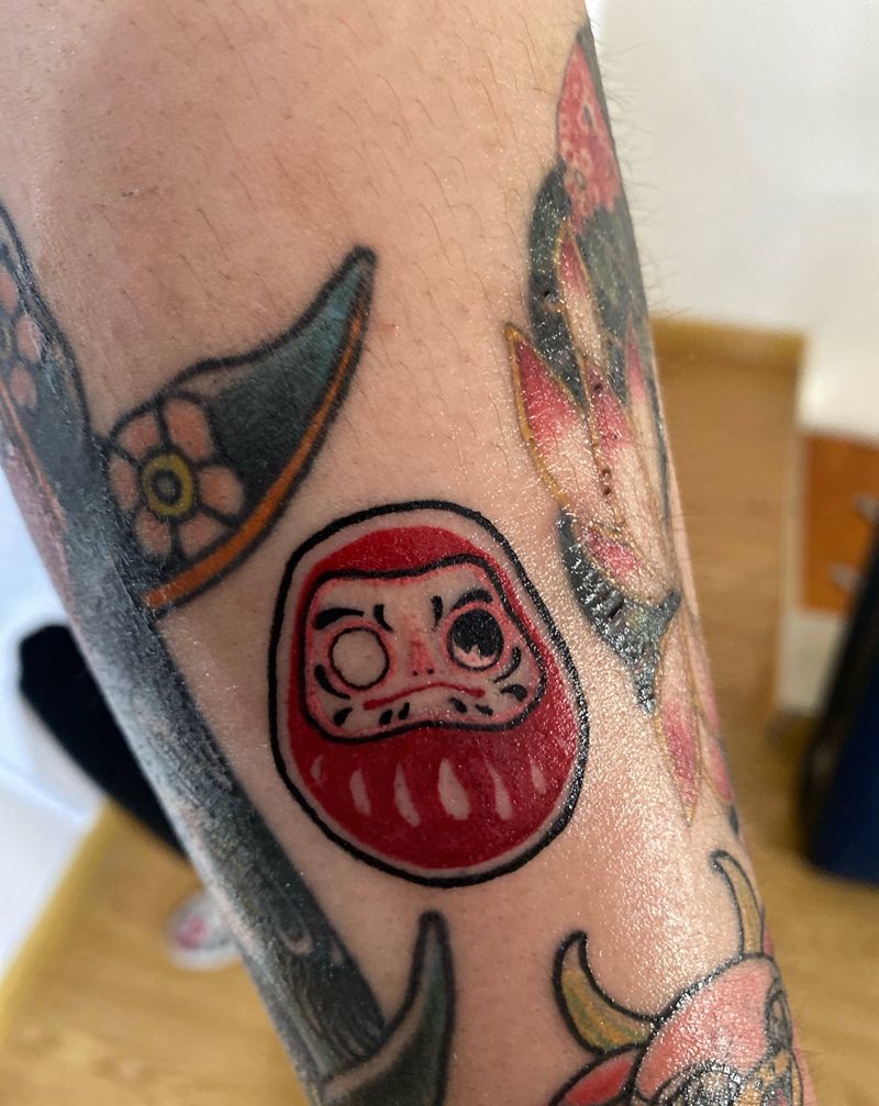 当前位置: 首页 >辽宁省盘锦市纹身店-沧水刺青纹身图案>达摩蛋纹身图片_手臂Old School纹身图案