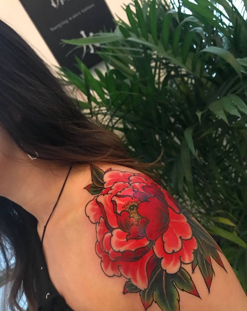 牡丹纹身图片_传统肩部成品植物纹身图案