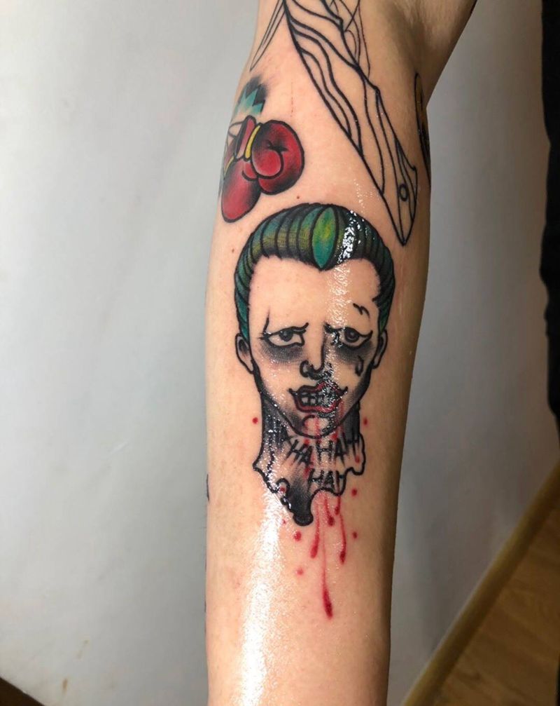• T包小腿吹火男+阿多福纹身图片_腿部老传统新传统吹火男阿