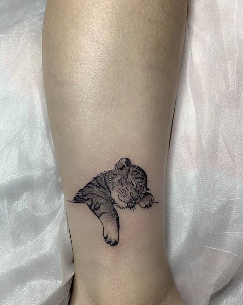 当前位置: 首页 >辽宁省盘锦市纹身店-沧水刺青纹身图案>小老虎纹身图片_脚部点刺小清新纹身图案