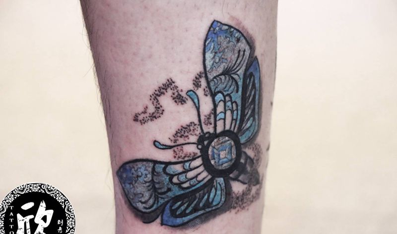 当前位置: 首页 >辽宁省丹东市纹身店-欣刺青纹身图案>蝴蝶纹身图片_腿部水彩蝴蝶纹身图案