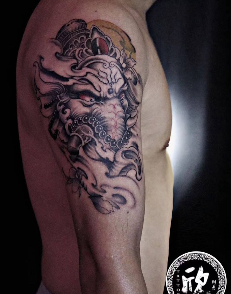 当前位置: 首页 >辽宁省丹东市纹身店-欣刺青纹身图案>象神纹身图片_肩部新传统象神纹身图案