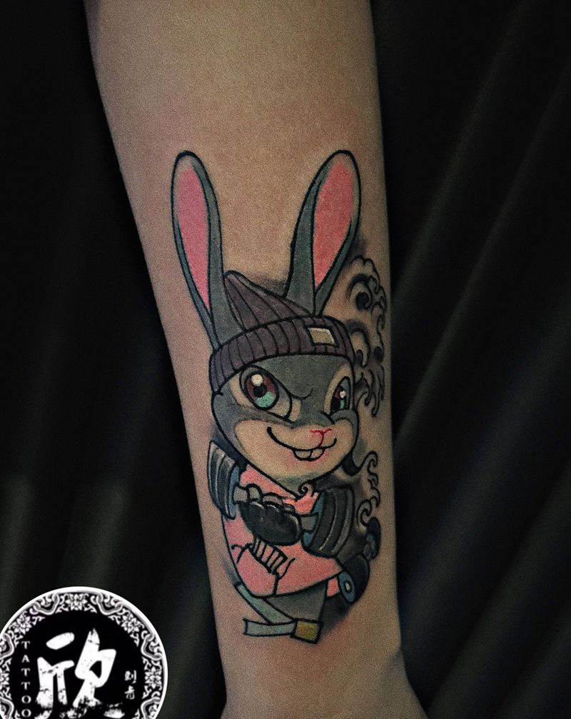 当前位置: 首页 >辽宁省丹东市纹身店-欣刺青纹身图案>school兔子纹身图片_手臂New School纹身图案