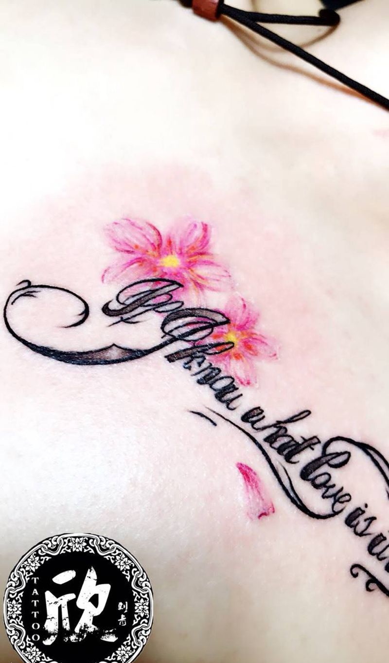 当前位置: 首页 >辽宁省丹东市纹身店-欣刺青纹身图案>自己设计的樱花字母、纹身图片_成品胸部清新植物字符纹身图案