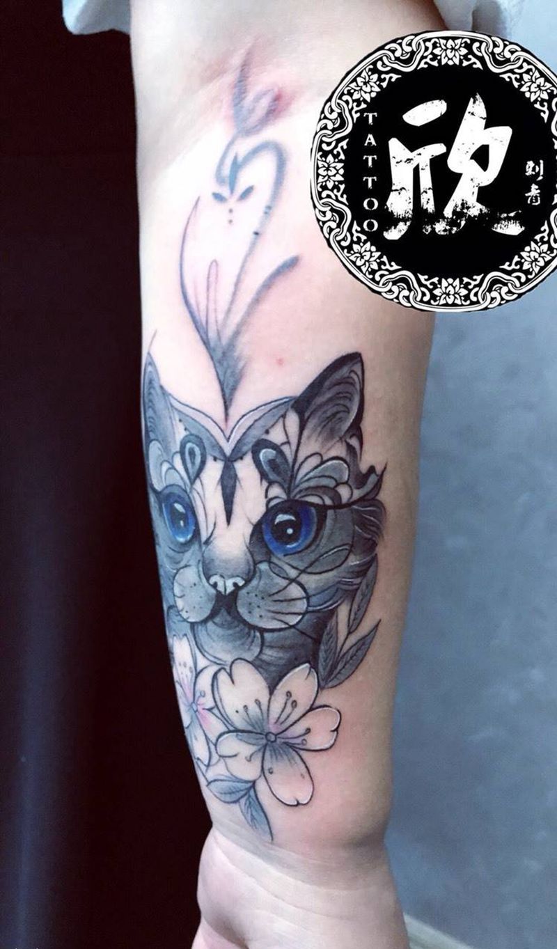 当前位置: 首页 >辽宁省丹东市纹身店-欣刺青纹身图案>猫纹身图片_成品手臂欧美动物纹身图案