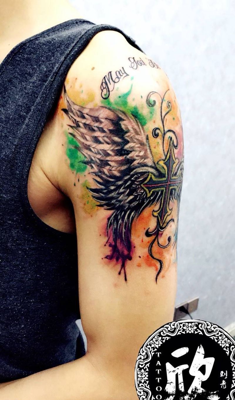• 纹身吧推荐的披肩图腾半胛纹身图案作品展示