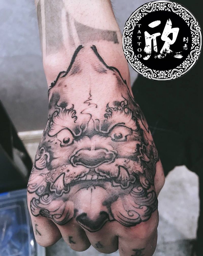 当前位置: 首页 >辽宁省丹东市纹身店-欣刺青纹身图案>手背唐狮子纹身图片