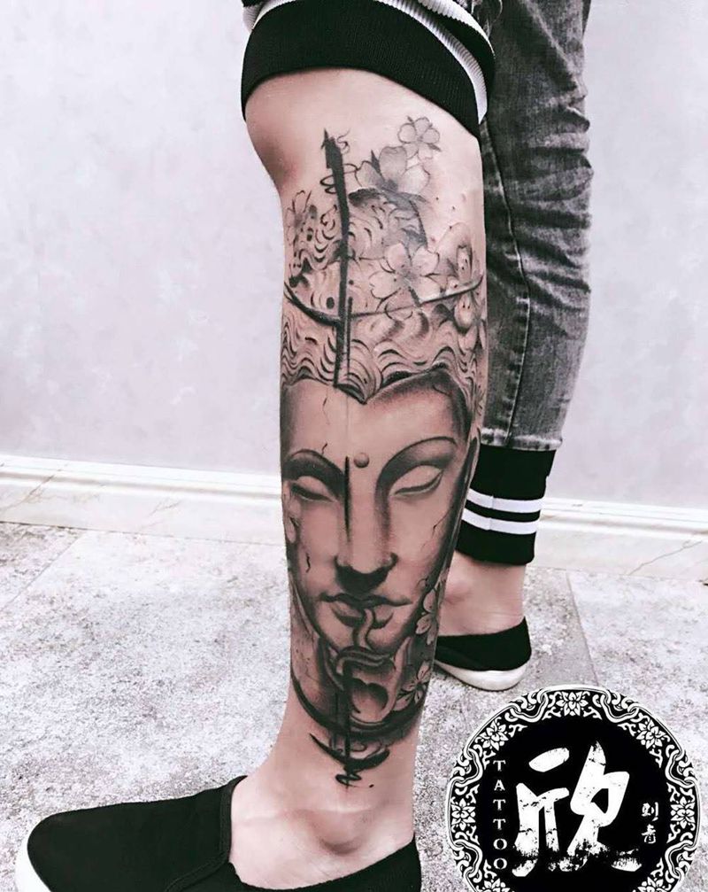 当前位置: 首页 >辽宁省丹东市纹身店-欣刺青纹身图案>【欣刺青】小腿佛纹身图片