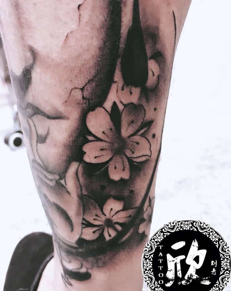 • T网红王老大花腿龙纹身图片_腿部新传统纹身图案