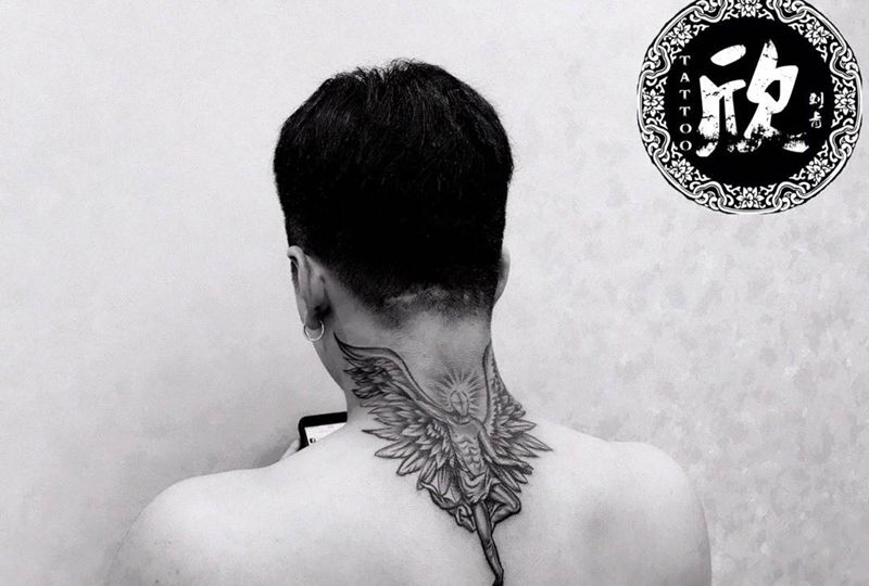 当前位置: 首页 >辽宁省丹东市纹身店-欣刺青纹身图案>天使翅膀纹身图片_成品颈部欧美鬼神纹身图案