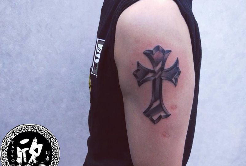 当前位置: 首页 >辽宁省丹东市纹身店-欣刺青纹身图案>十字架纹身图片_肩部手臂十字架小图案纹身图案