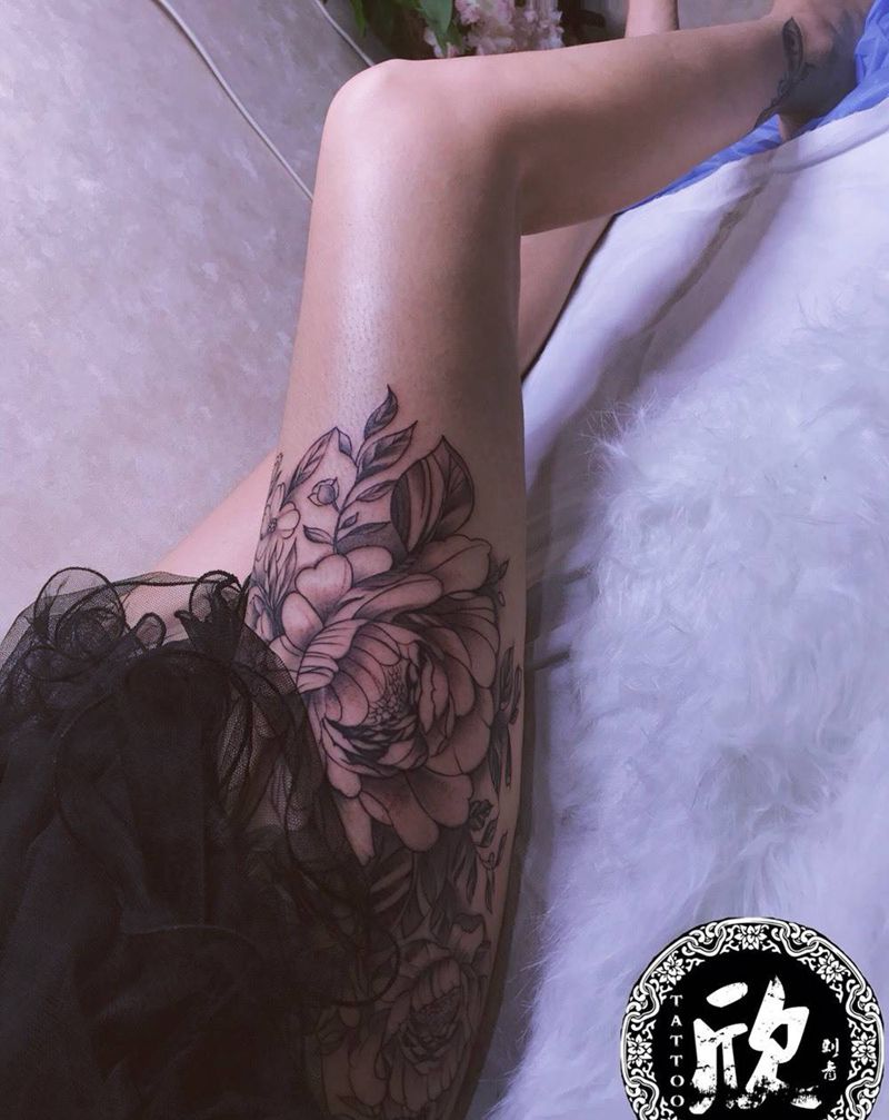 当前位置: 首页 >辽宁省丹东市纹身店-欣刺青纹身图案>花纹身图片_臀部腿部点刺花植物素纹身图案