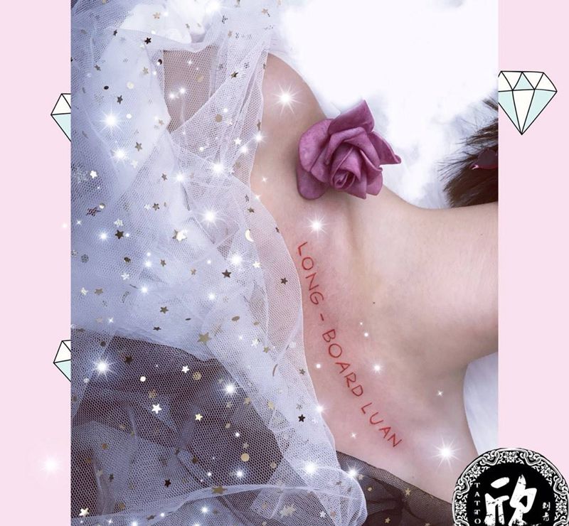 彩色英文纹身图片_颈部胸部花体字纹身图案