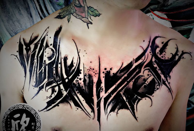 胸前花体字纹身图片_胸部花体字纹身图案