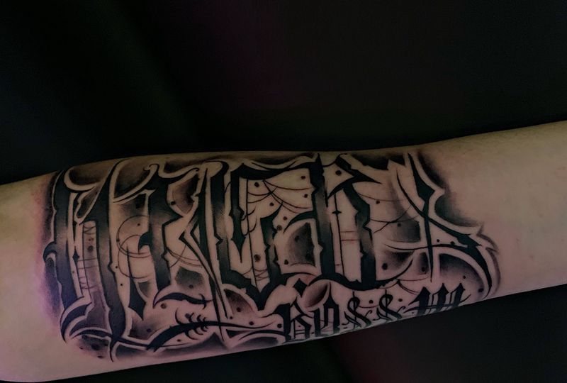 当前位置: 首页 >辽宁省丹东市纹身店-欣刺青纹身图案>花体字纹身图片_手臂花体字小臂花体字纹身图案