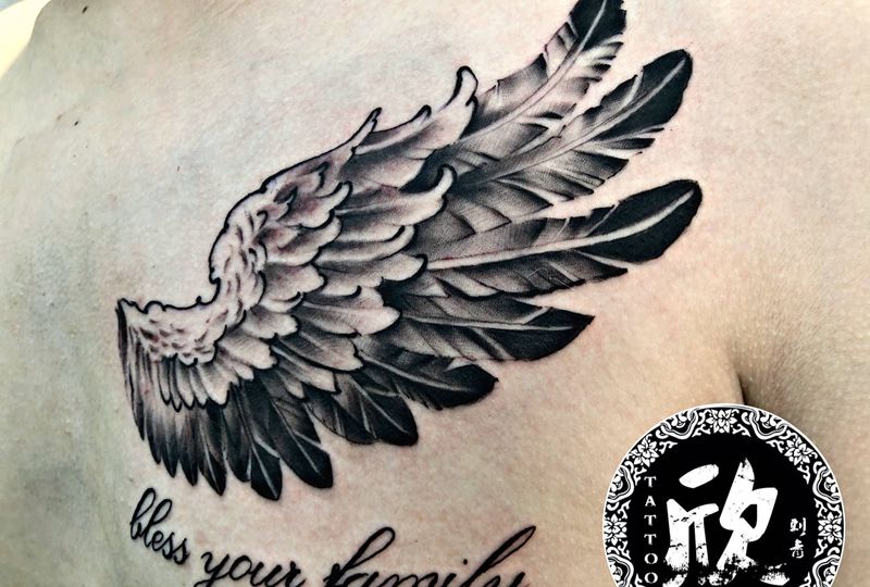 当前位置: 首页 >辽宁省丹东市纹身店-欣刺青纹身图案>翅膀纹身图片_胸部欧美写实翅膀纹身图案