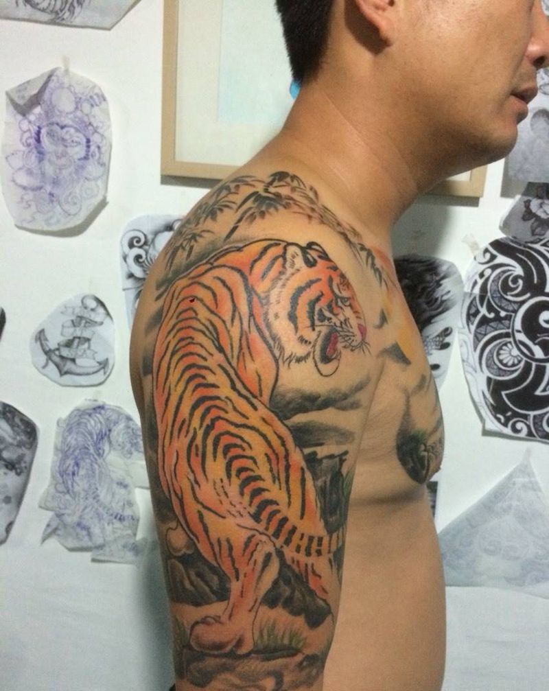 当前位置: 首页 >辽宁省营口市纹身店-80_MD_tattoo纹身图案>老虎半价遮盖纹身图片